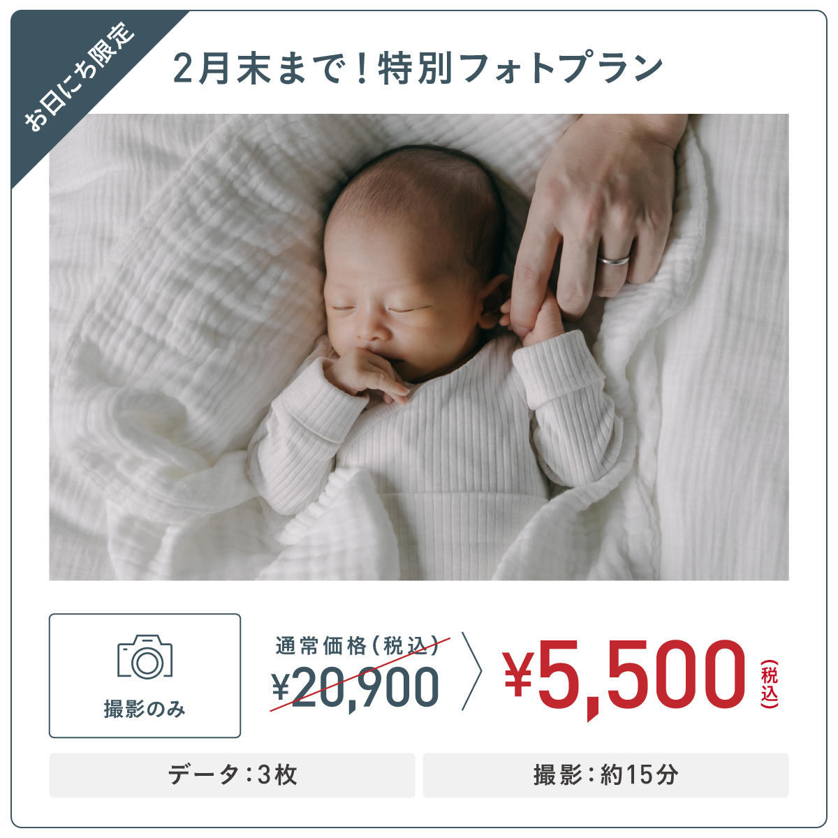 生後まもない赤ちゃんと過ごす貴重な日々を、写真で残しませんか?ママも赤ちゃんも安心できる環境で、初めてのスタジオ撮影にぴったりな「ベビーフォトプラン」。成長のスピードが早い時期だからこそ、今しか残せない赤ちゃんの表情や仕草を丁寧に切り取ります。リピーター様やごきょうだいの参加も大歓迎。お得な価格で撮影が楽しめるこの機会をぜひお見逃しなく。