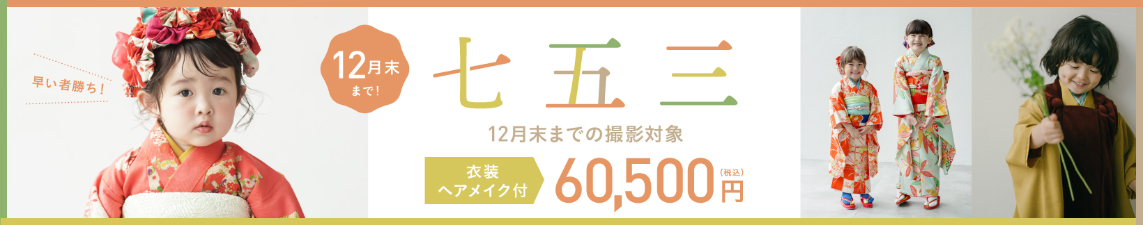 七五三プラン(全データ) ¥60,500 (土日祝 5500円 / 税込) |